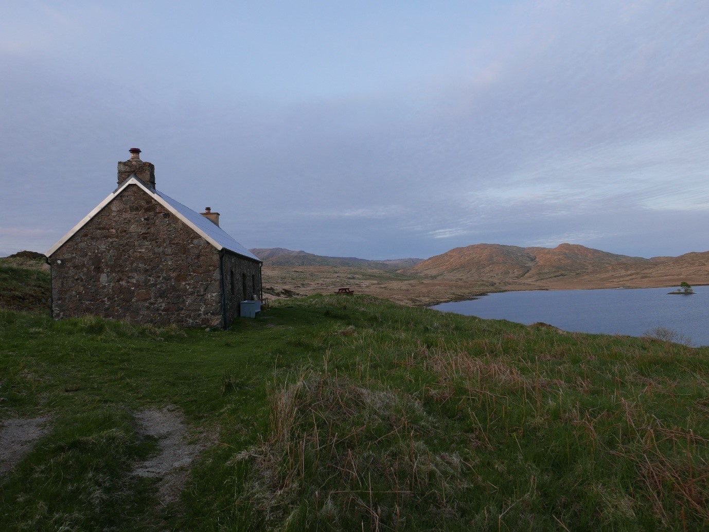 The weather was dry and became hot in the second half of the walk. Midges were absent. Getting water was a struggle on occasions. Other logistics were fine, we resupplied at Lochaline stores, Kinlochleven and Strathyre. We had dropped a couple of caches of food and gas at Taigh Seumas bothy and at Bridge of Gaur and a car was left at Crianlarich station containing a change of clothes.